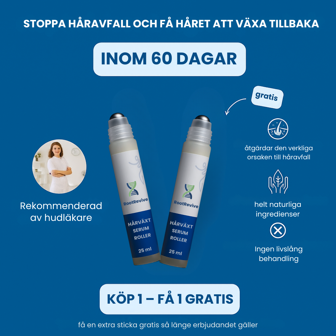 RootRevive stoppar håravfallet och låter nytt hår växa ut med 100% Naturliga ingredienser.